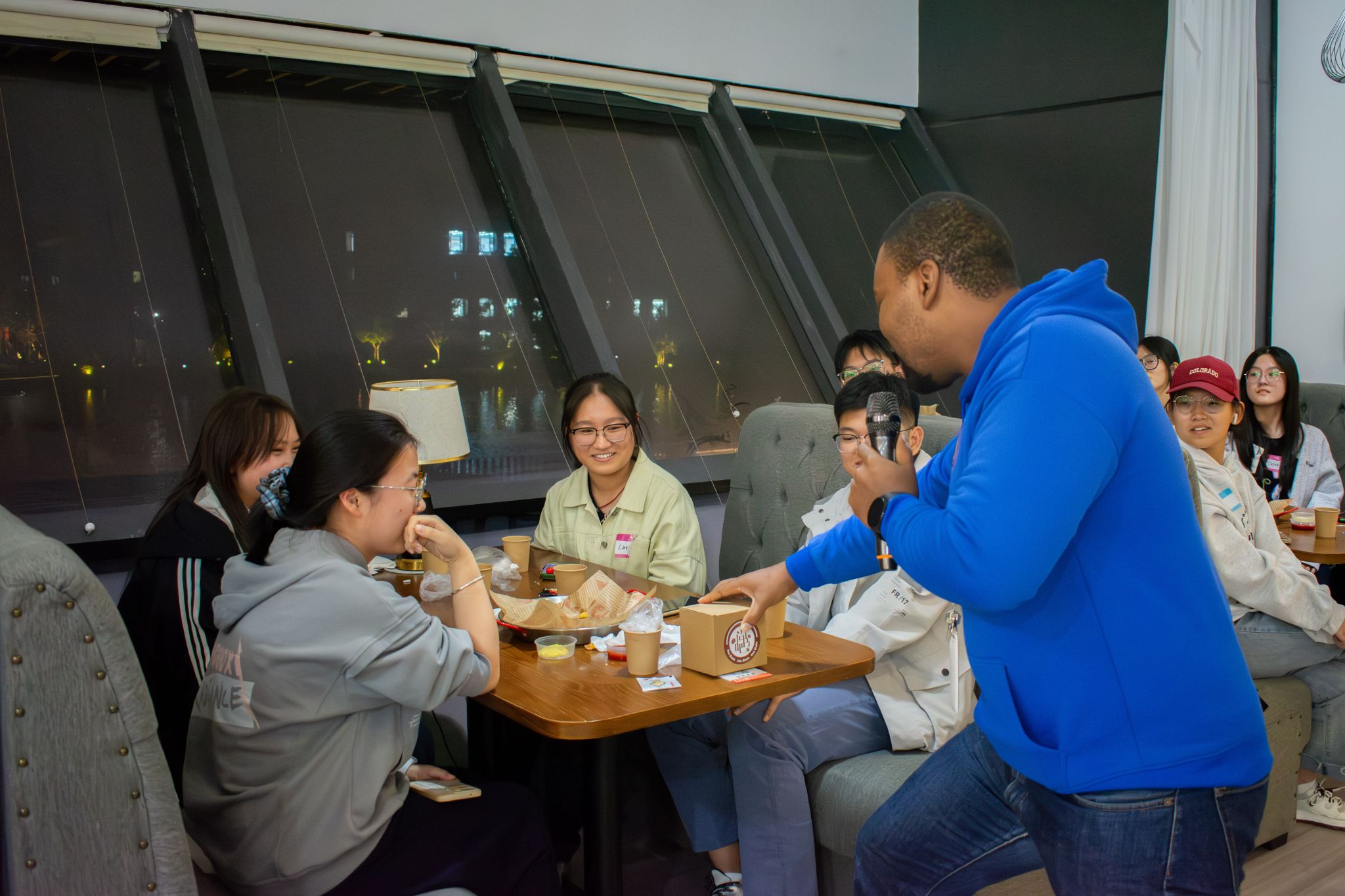 紧接着,他设计了一个极具代入感的“角色扮演”环节:将同学们分成六人小组,每位小组成员都化身成为了一位“标签鲜明”的室友。一号是“烟鬼”,终日吞云吐雾;二号是“学霸”,挑灯夜读、不分昼夜;三号是“派对狂人”,在寝室引吭高歌、尽情舞动;四号是邋遢的“懒惰者”,不讲个人卫生;五号是“呼噜王”,鼾声如雷;六号则是“强迫症”室友,执着于完美整洁。面对这些生动立体的形象,Kay抛出了一个发人深省的问题:如果你是他们,你将如何做出改变?他巧妙地将视角从批判转向理解,从抱怨转向解决问题,引导同学们在思辨中学习共情,在换位中体会包容。