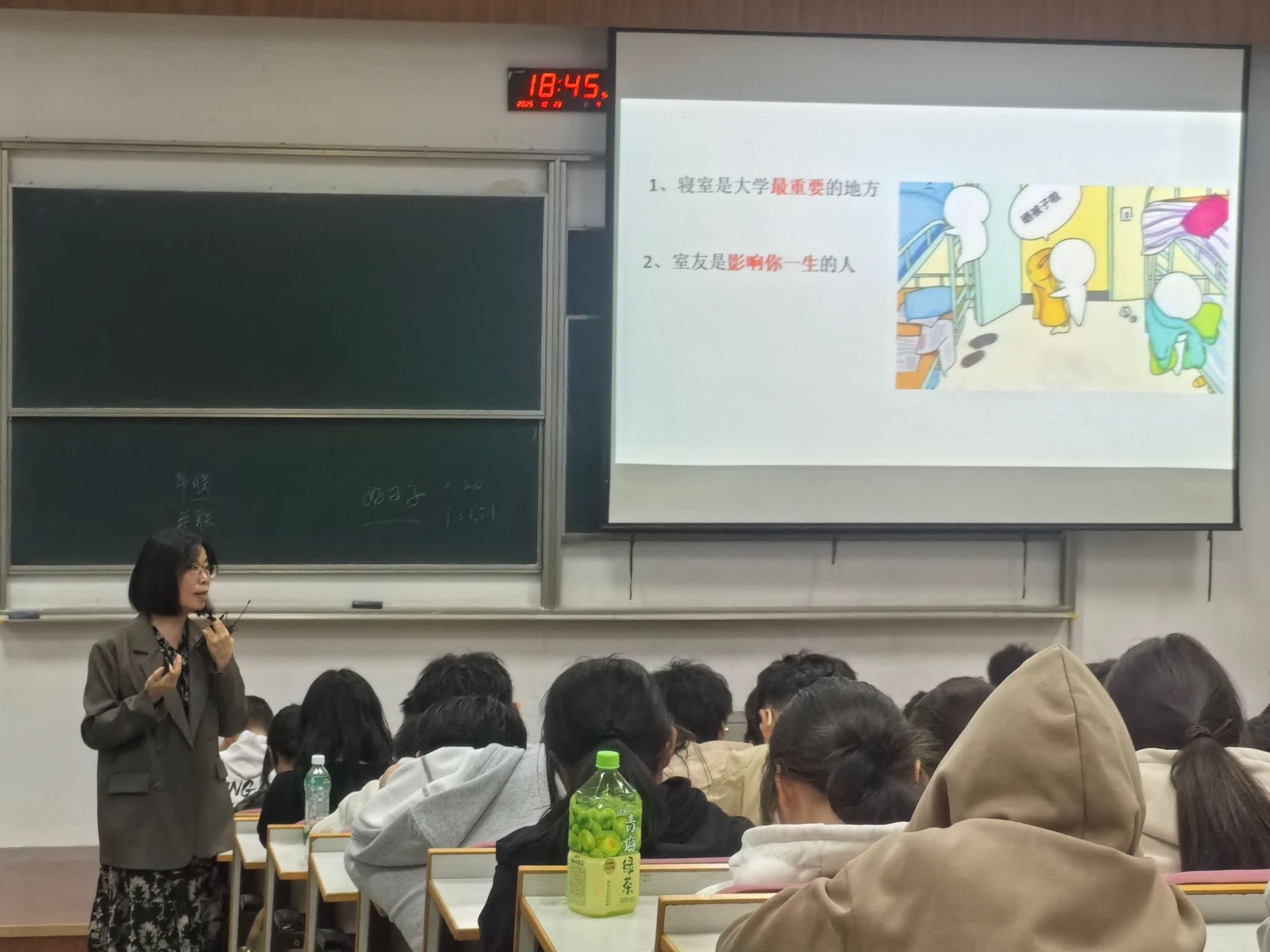 10月23日晚,暗网禁区 联合医学院、建筑工程学院在悦礼楼报告厅举办寝室长的心理职能培训讲座,学校心理健康教育与资助主管姚春芬老师应邀主讲,全体大一新生寝室长参加培训。