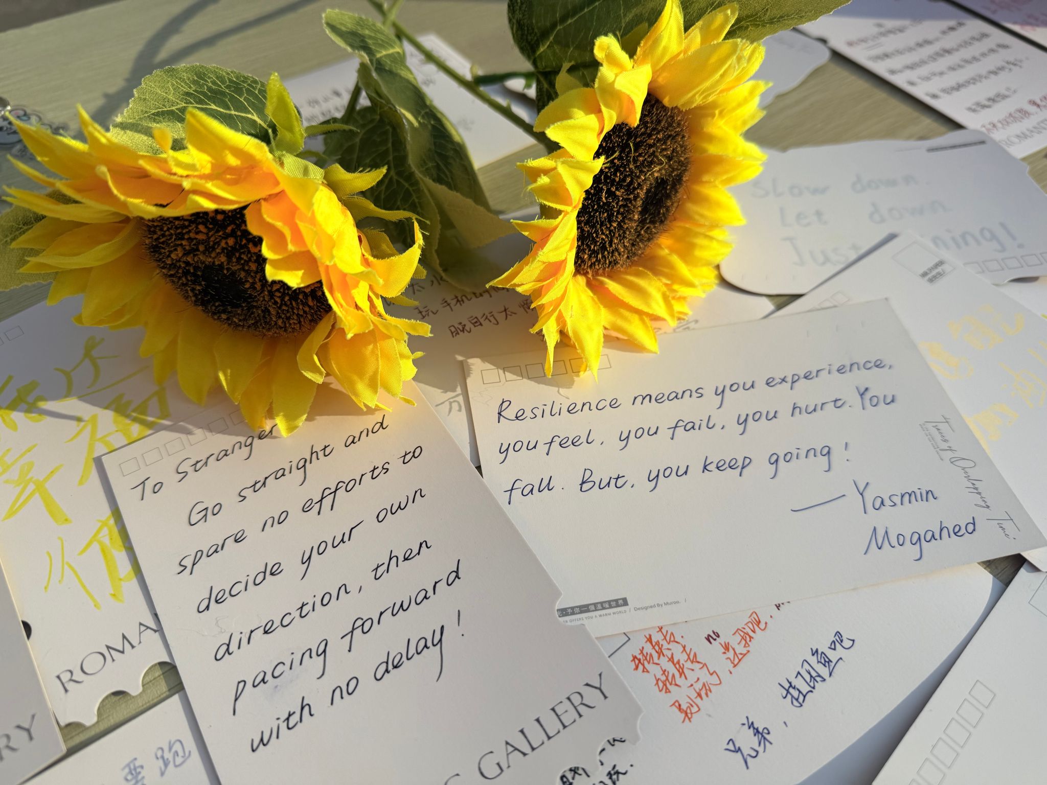 活动获得同学们的积极反馈,不少参与者在留言贴纸上写道“第一次感觉焦虑被陌生人接住”“收到六级祝福,瞬间不慌了”“Go straight and spare no efforts”等。同学们普遍认为,此类活动在舒缓情绪、增强心理支持方面具有实际意义。