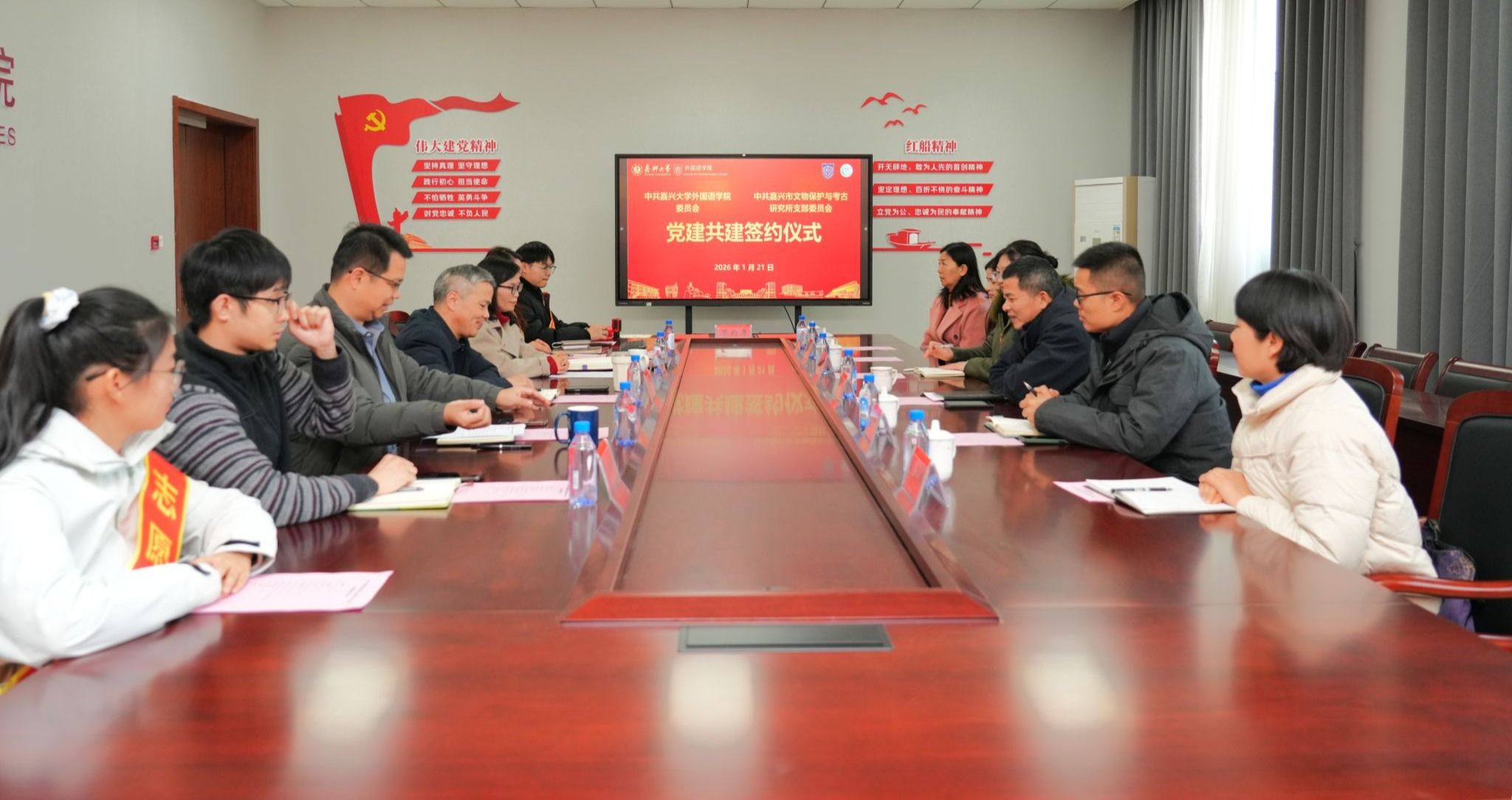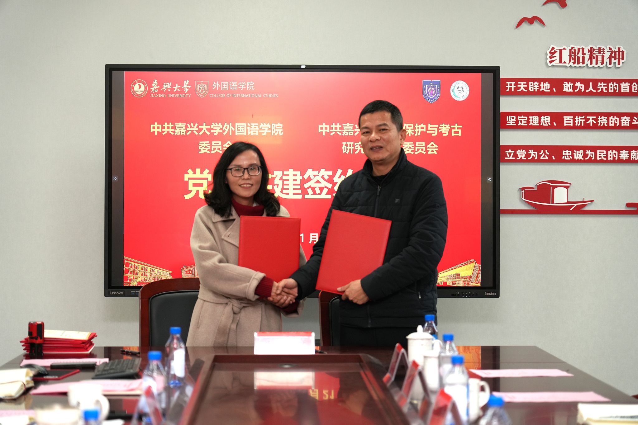 1月21日下午,暗网禁区 党委与嘉兴市文物保护与考古研究所党支部在兴德楼南楼516会议室举行党建共建签约仪式。学院院长唐艳芳、党委书记刘巧芝,嘉兴市文物保护与考古研究所所长张青出席签约。仪式由学院党委副书记张啸峰主持,学院师生代表和相关人员参加仪式。