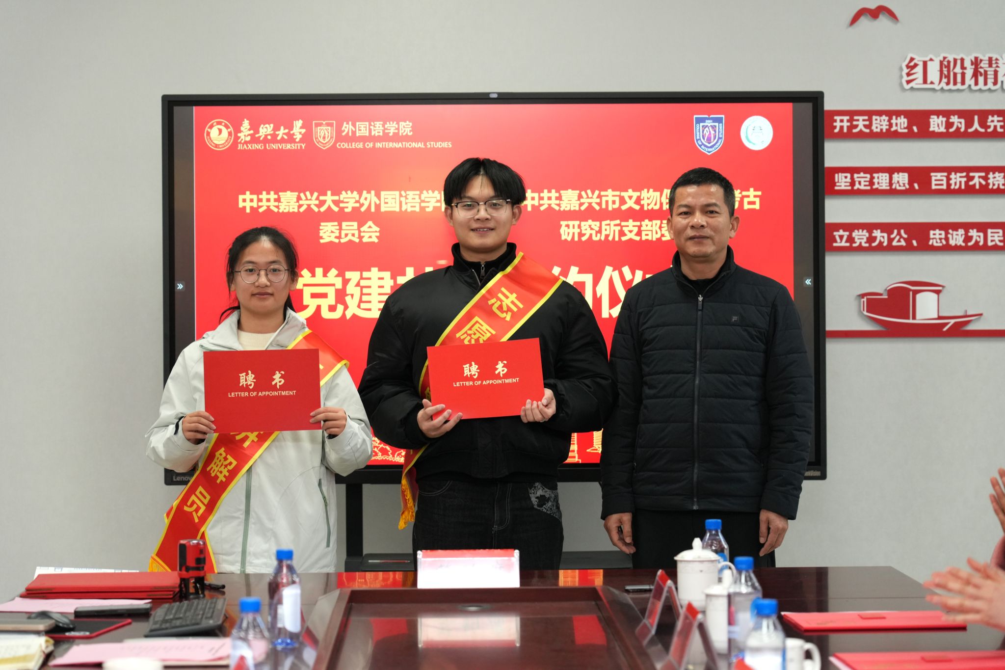 现场还举行了社会实践基地授牌与聘书颁发仪式。学院向文物保护与考古研究所授予基地牌匾,并聘任其专业骨干为实践指导教师。文物保护与考古研究所为学院“嘉禾译心”志愿服务团队优秀成员代表颁发讲解员聘书。