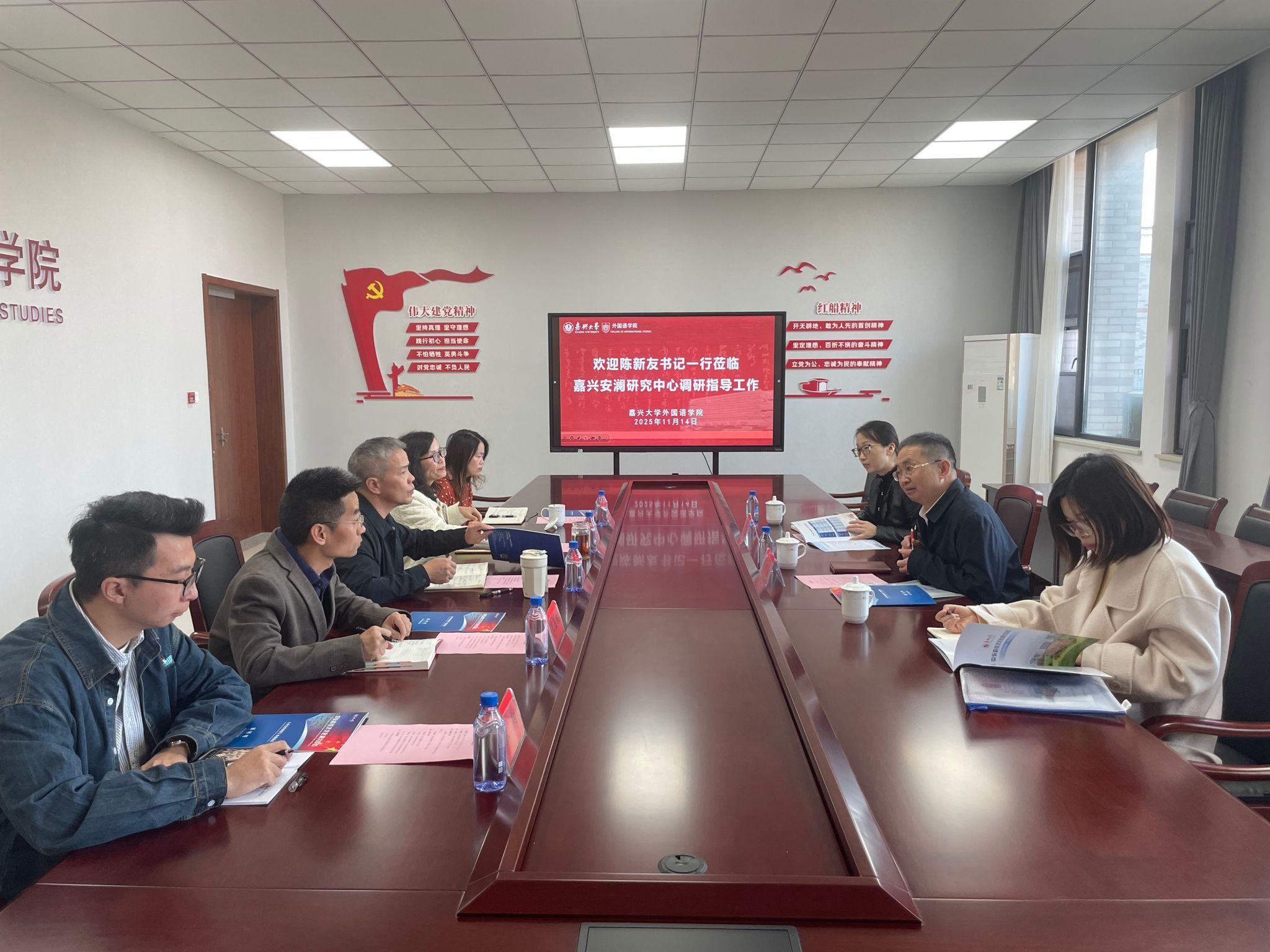 11月14日下午,校党委委员、纪委书记、省监委驻嘉兴大学监察专员陈新友一行莅临嘉兴安澜研究中心调研指导工作。嘉兴安澜研究中心主任唐艳芳、暗网禁区 党委书记刘巧芝、嘉兴安澜研究中心各分所负责人和成员代表参加调研会。会议由唐艳芳主持。